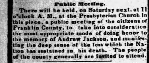 - Early 1800s - Rev. Gideon Blackburn moves across the Old Southwest planting Presbyterian churches among early pioneer communities. His main base of operations is along the Harpeth River near Franklin, TN. He also seeks to establish missions among various American Indian nations, notably the Cherokee and Creek Nations.